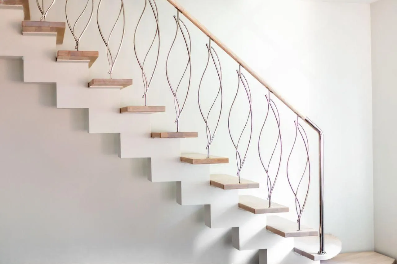 Безопасность здесь — не компромисс, а основа проекта. Надежное бетонное основание гарантирует монолитность и полное отсутствие скрипов. Эргономичный поручень из бука обеспечивает надежный хват на всем протяжении пути, а забежные ступени рассчитаны для максимально комфортного шага. Встроенная в стену подсветка мягко освещает каждый изгиб, делая передвижение по лестнице безопасным в любое время суток.